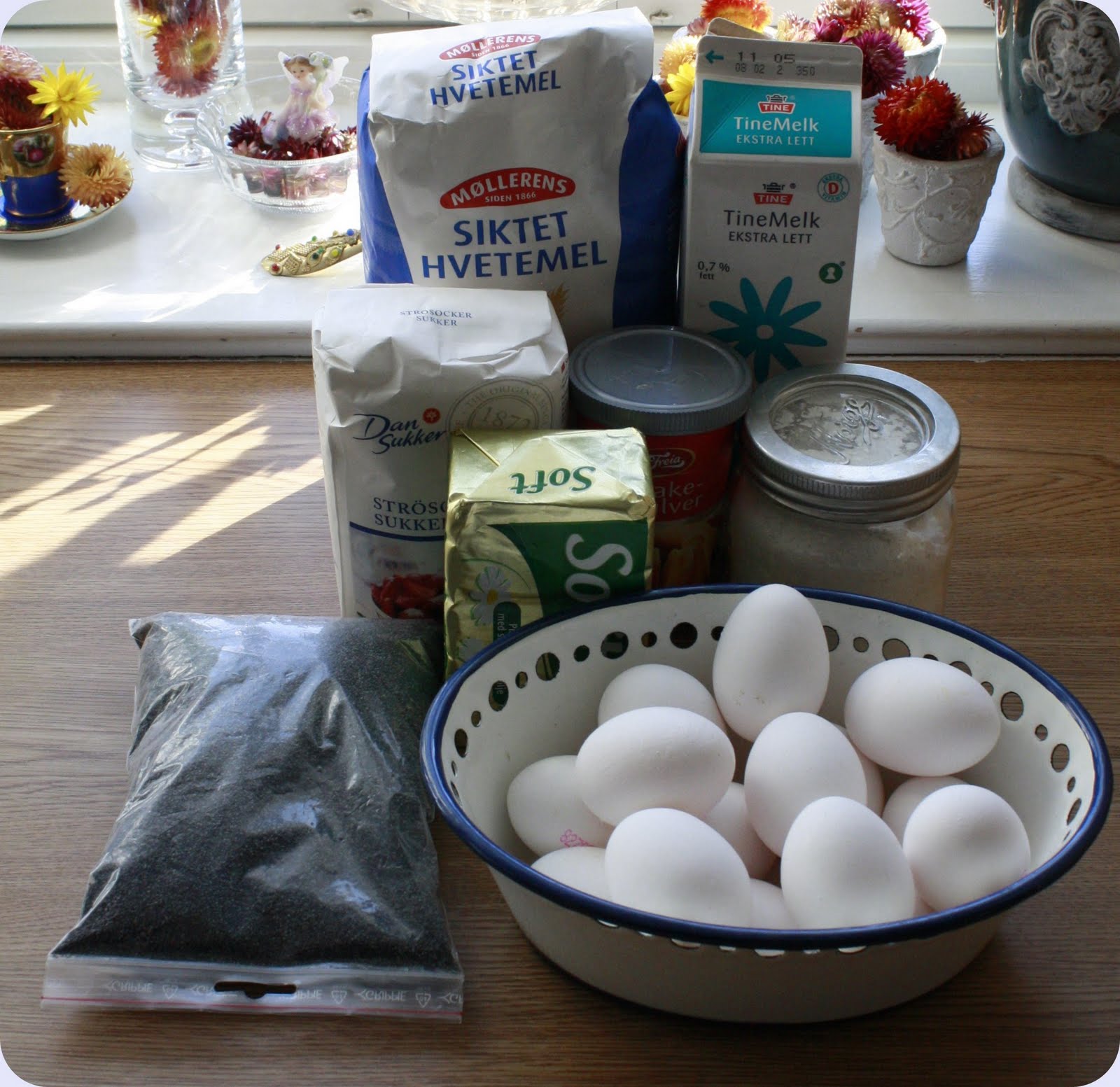 bland mel, valmuefrø, bakepulver og vaniljesukker