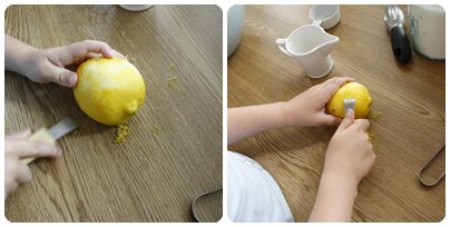 Rasp skallet av en nyvasket sitron, og ha det i røra.