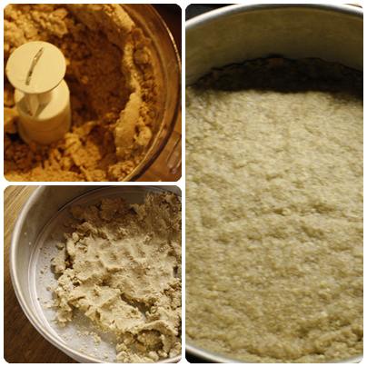 Press deigen ut i ei kakeform 24 cm med løs ring.