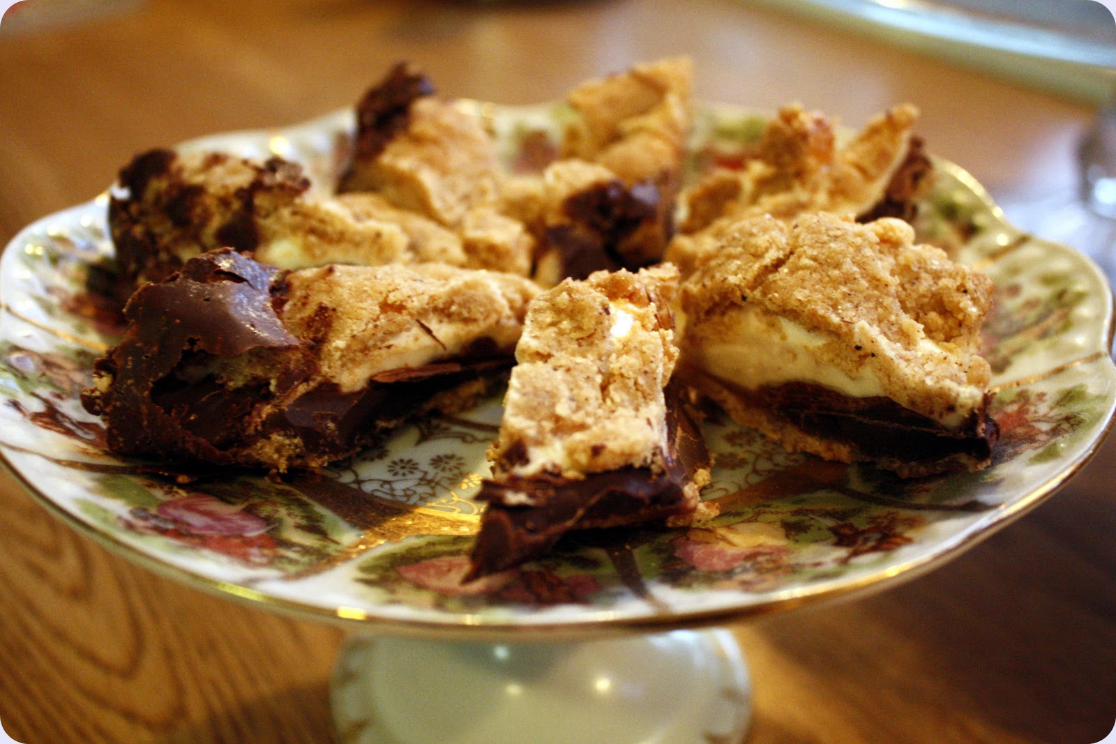 Evntuelt lage porsjons kaker. 2 kjeks 1-2 marshmallow og 1-2 ruter sjokolade.