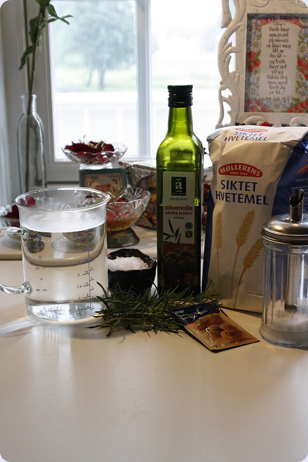 Bland mel, salt, sukker, olje,vann