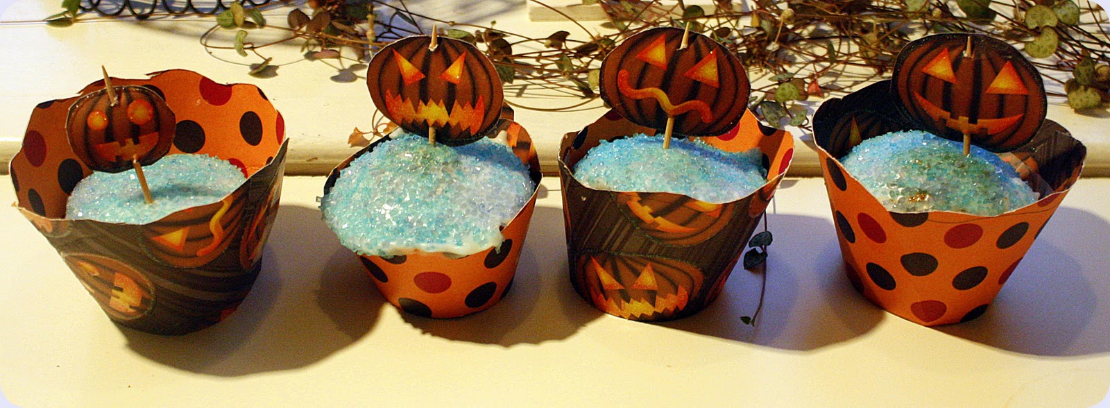 Her er de ferdige pyntede Halloweensmuffinsene mine,