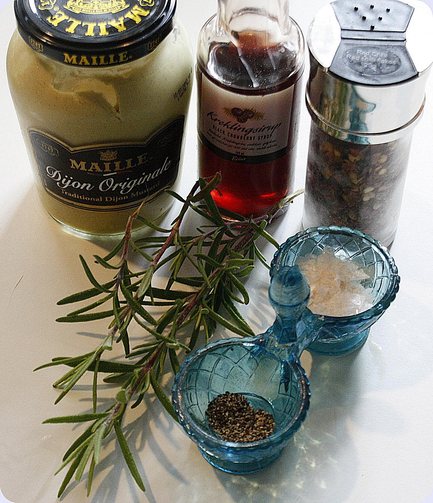 opphakket rosmarin, salt og pepper