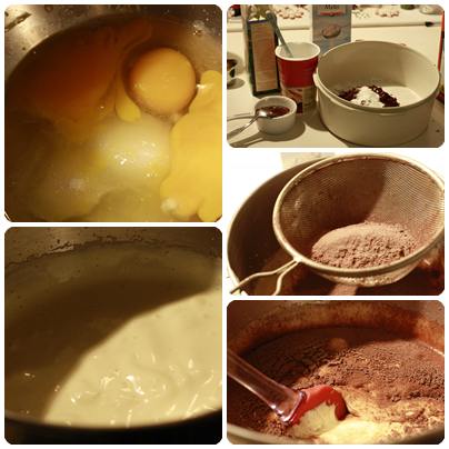 Bland sjokoladen og gelatinen i kremen med en slikkepott.