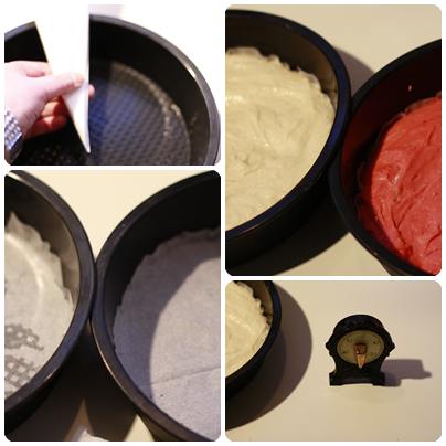 Jeg brukte begge de hvite kaka, og den ene av den røde kaka.