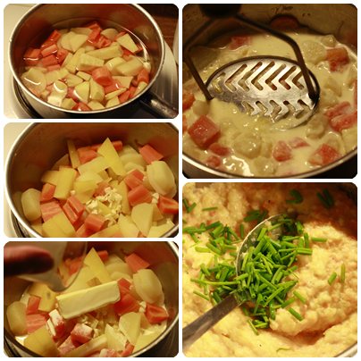 Sil av vannet og ha i fløte og smør.