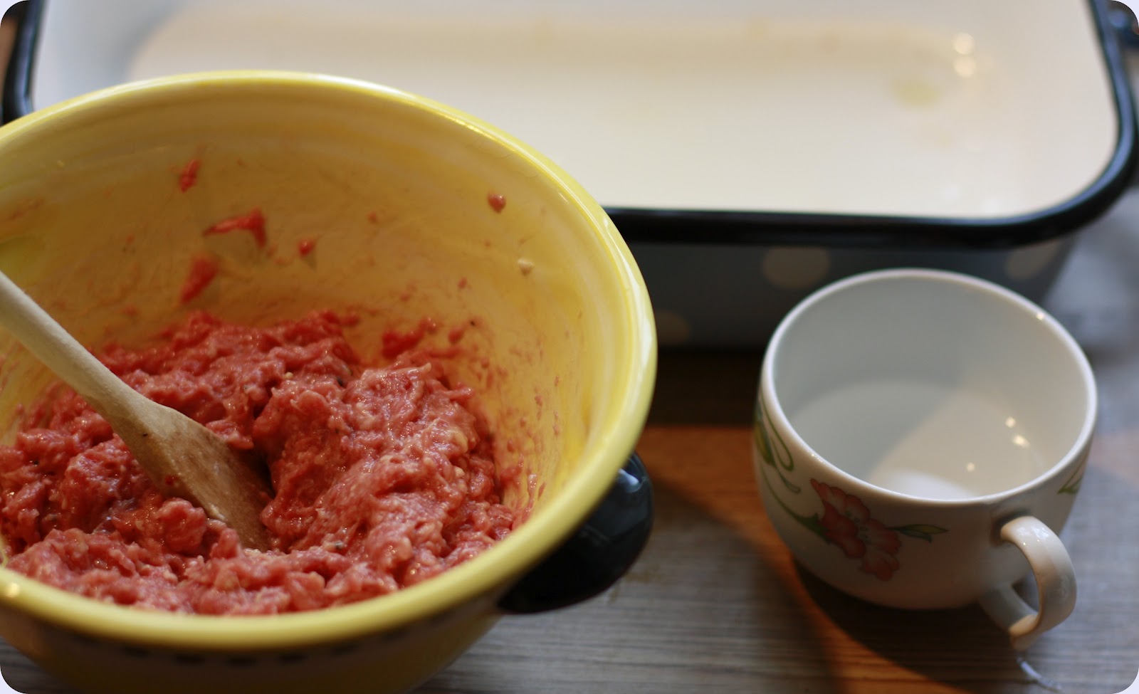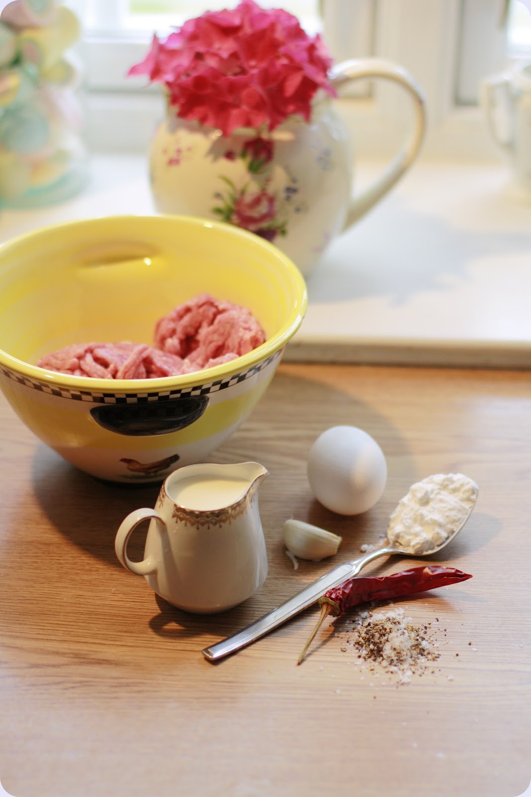 Rør kjøttdeigen seig sammen med salt og pepper.