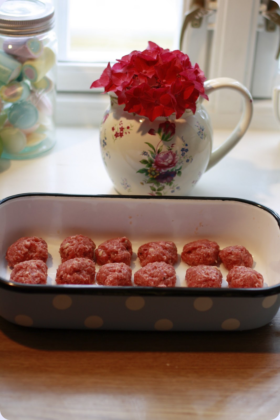 Kjøttbollene smaker også godt sammen med potetmos og tytebær,