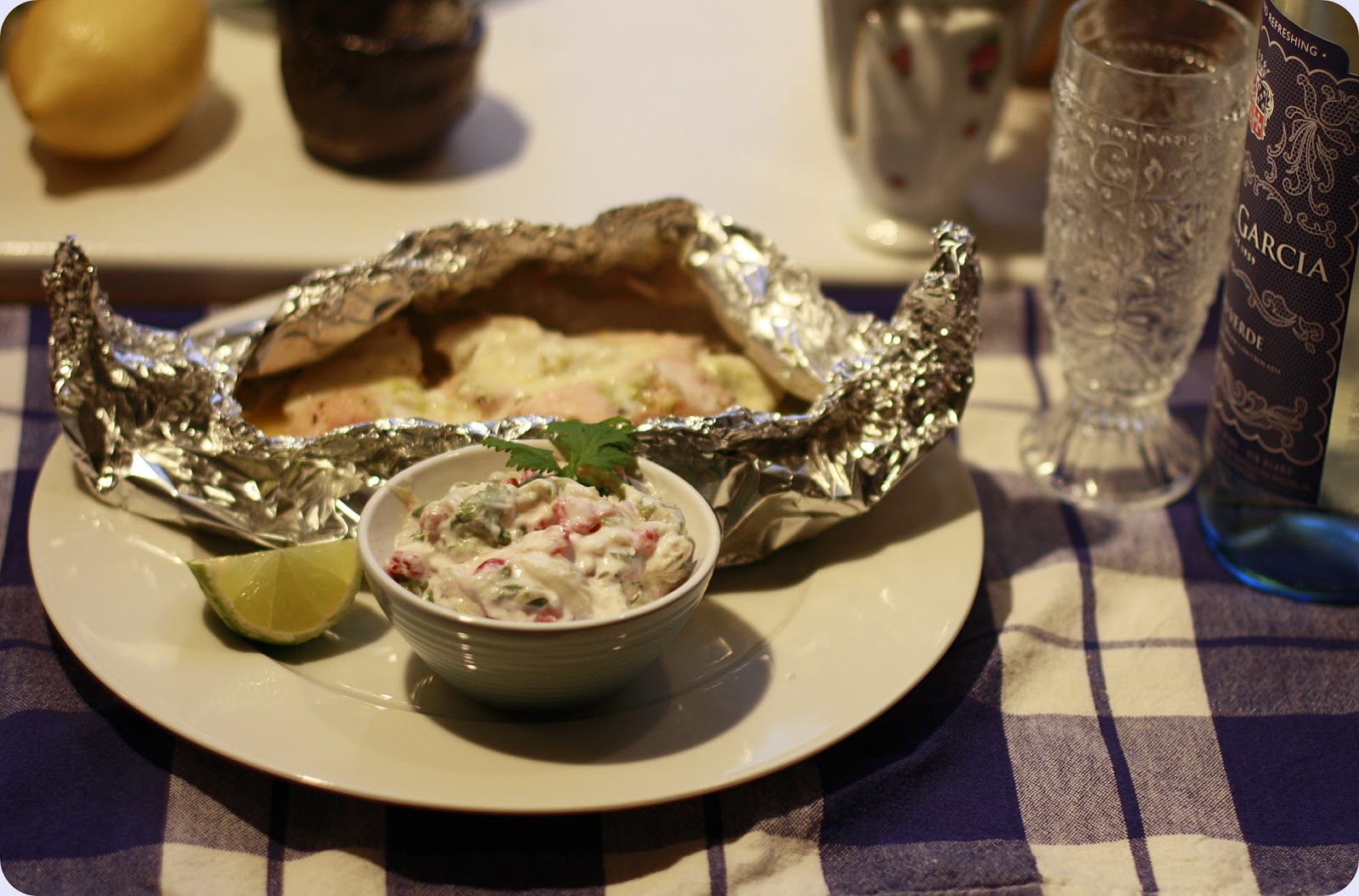 Server fisken sammen med tzatzikisalat, kokte poteter eller brød.