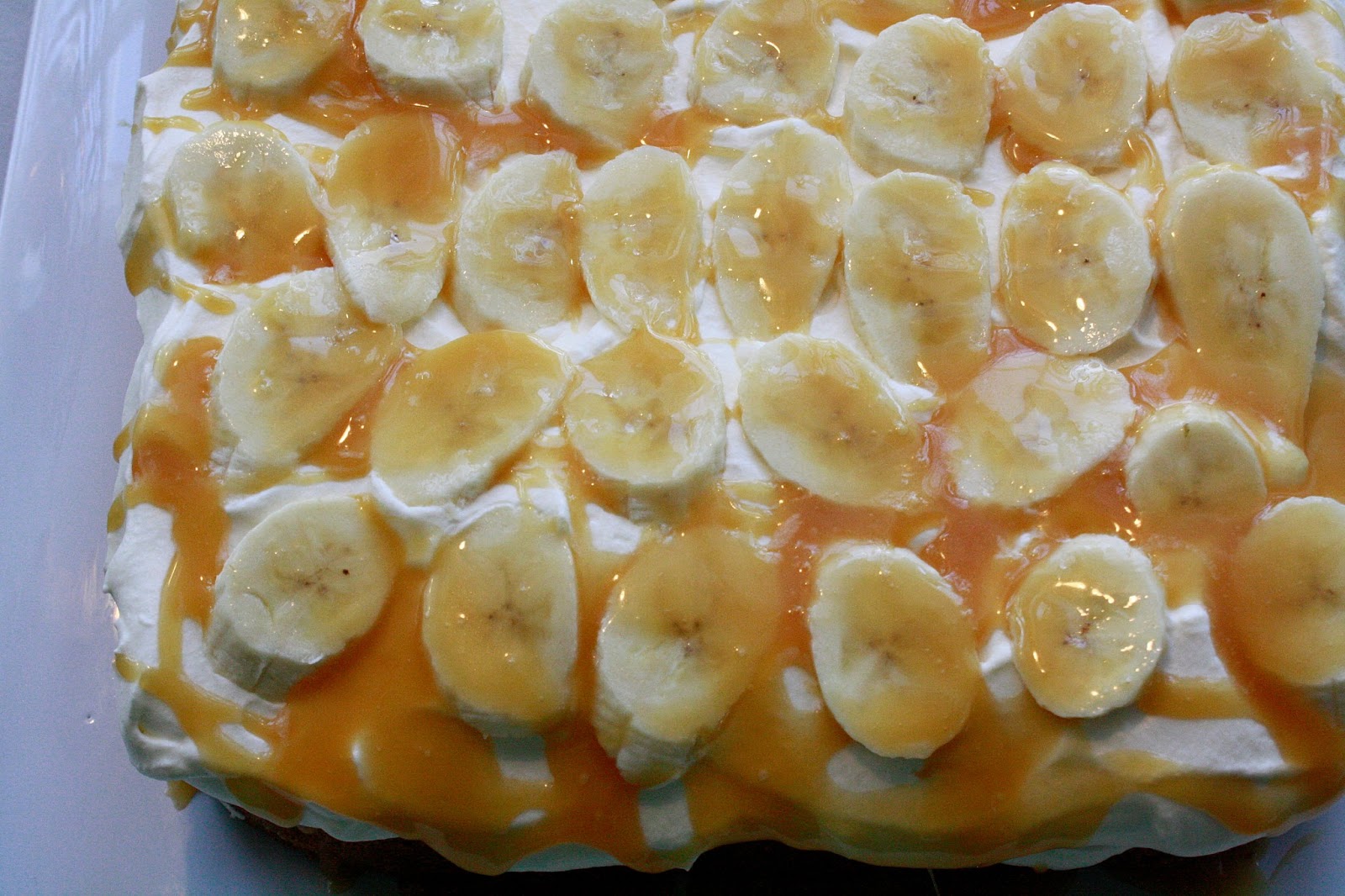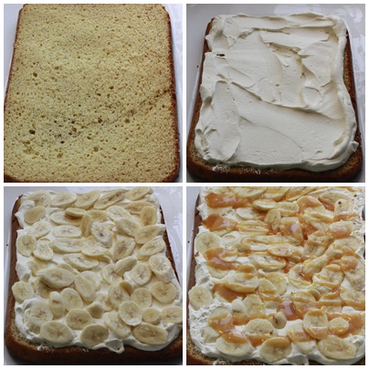 Stor karamellkake med banan og krem: