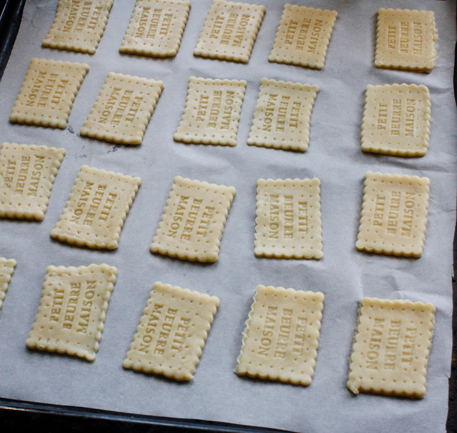 Legg kjeksene på et bakepapirkledd stekebrett.