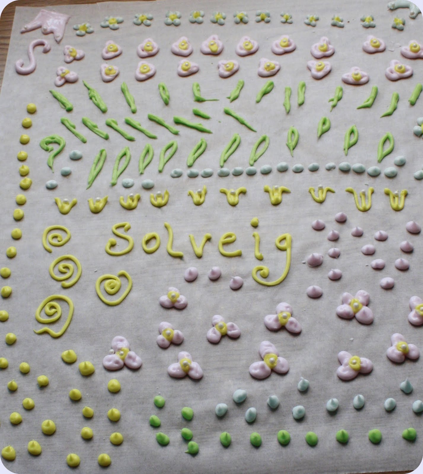 Sprøyt på små blomster ,blader , kroner ,bokstaver eller tegn hva du vil.