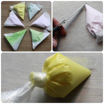 Lag flere kremerhus og fyll forskjellig farget deig i, og brett att øverst.