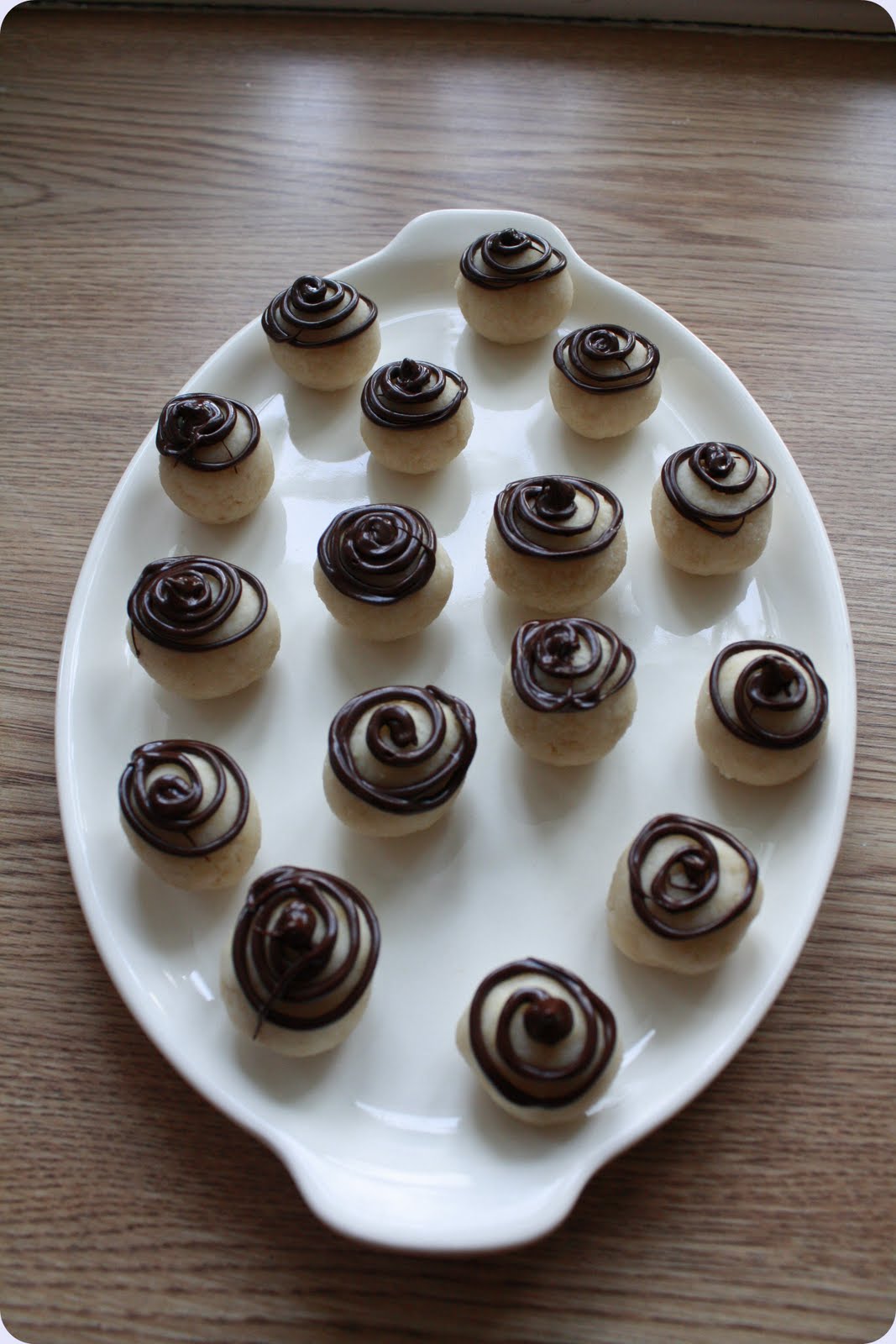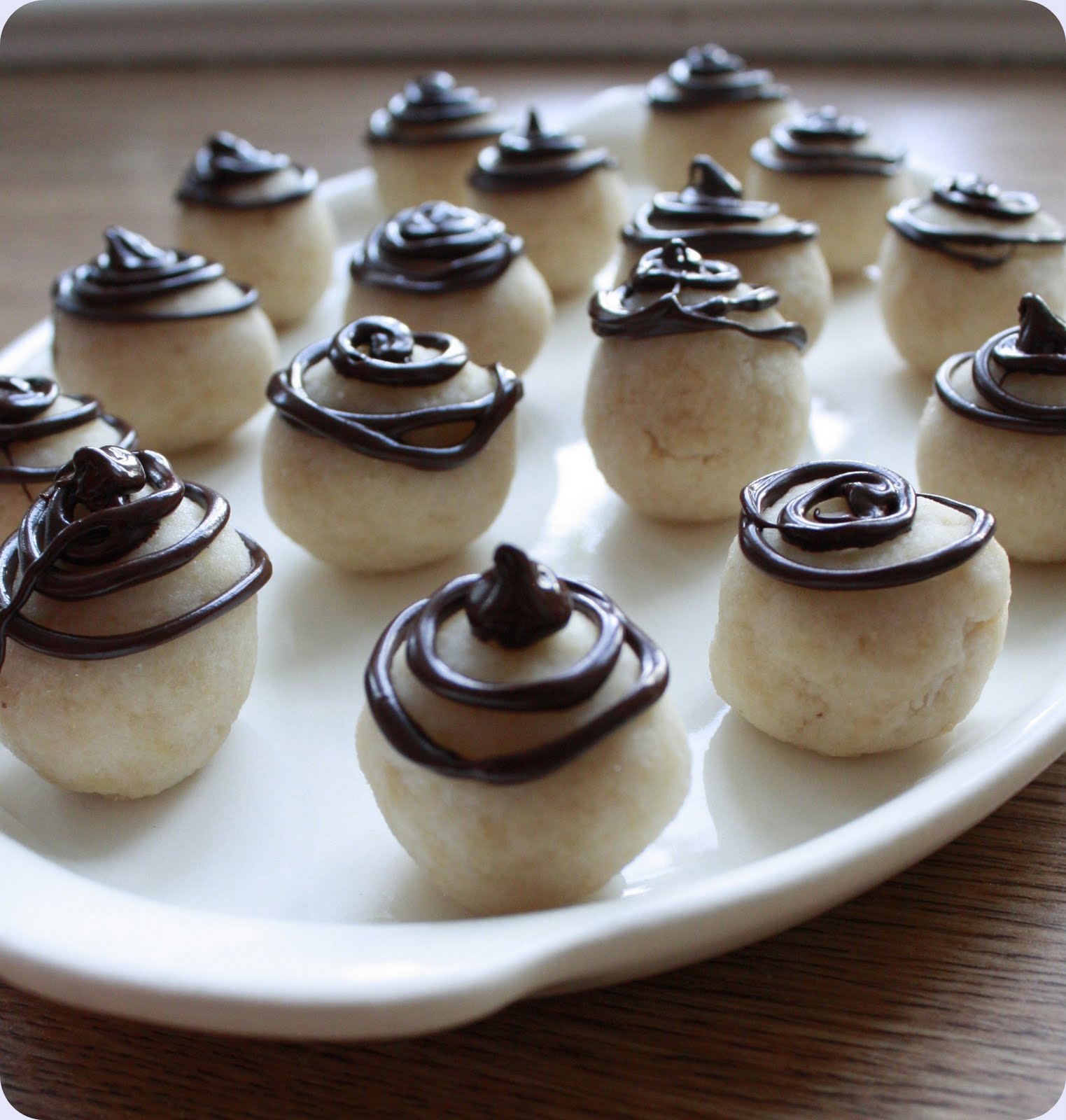 Pynt hver bit med litt av sjokoladen, gjerne i en spiral.