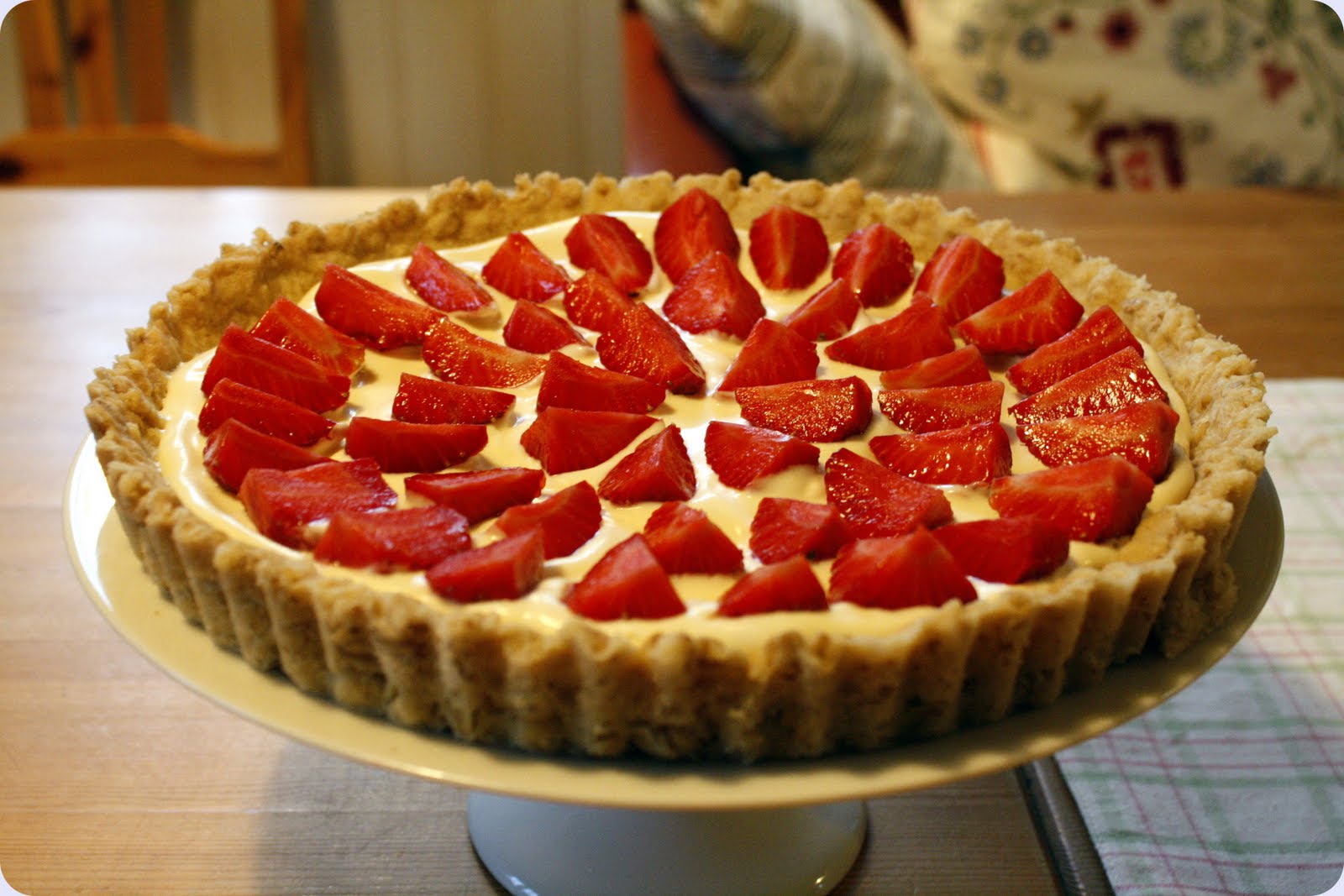 Sommerpai med sprøtt paiskall, mascaponekrem og jordbær…