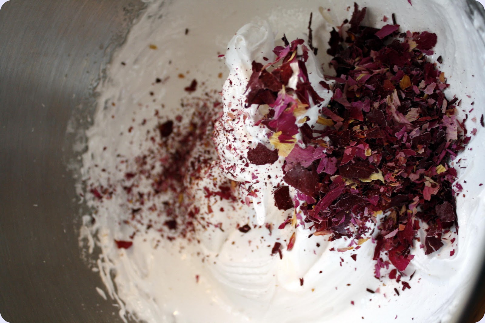 Knus eller hakk rosenbladene i mindre biter.