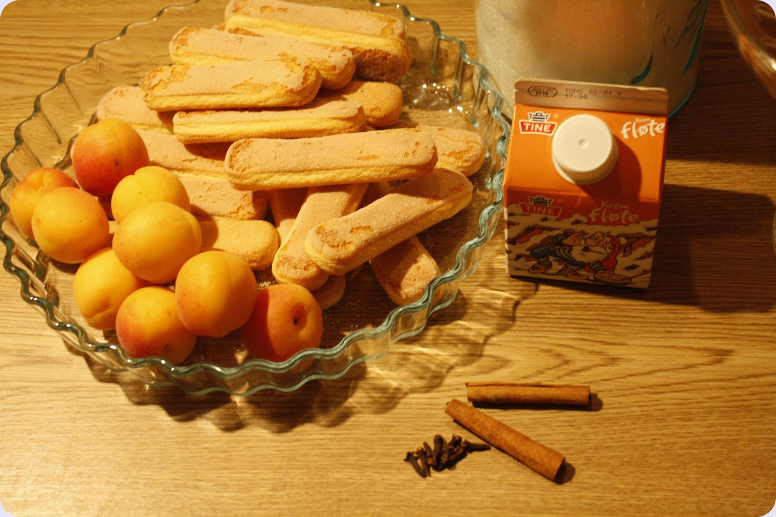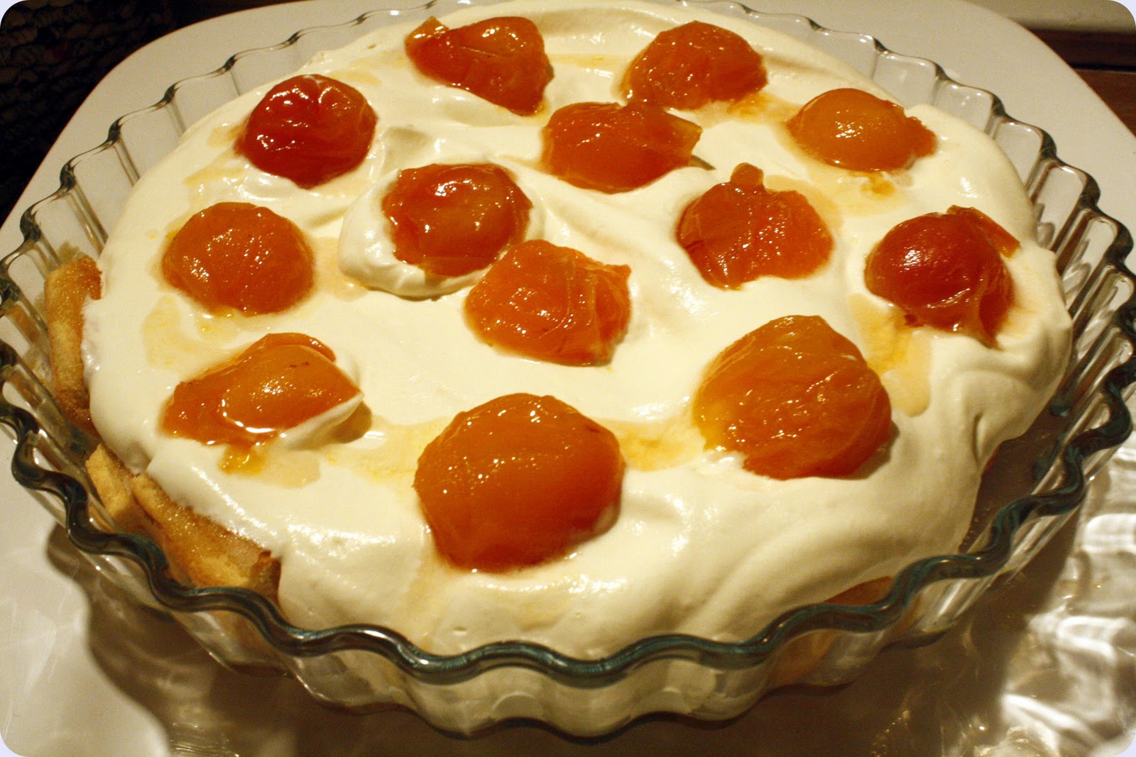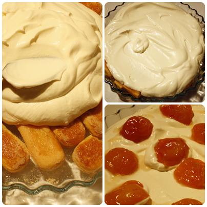 Til sist legges aprikosene oppå kremen.