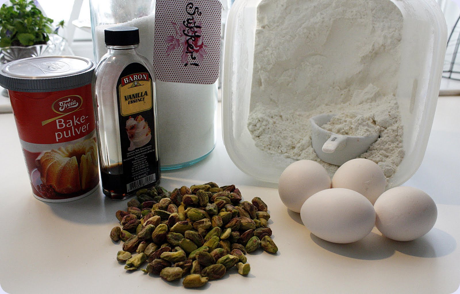 Ha i eggene som er lett vispet sammen med vaniljen.