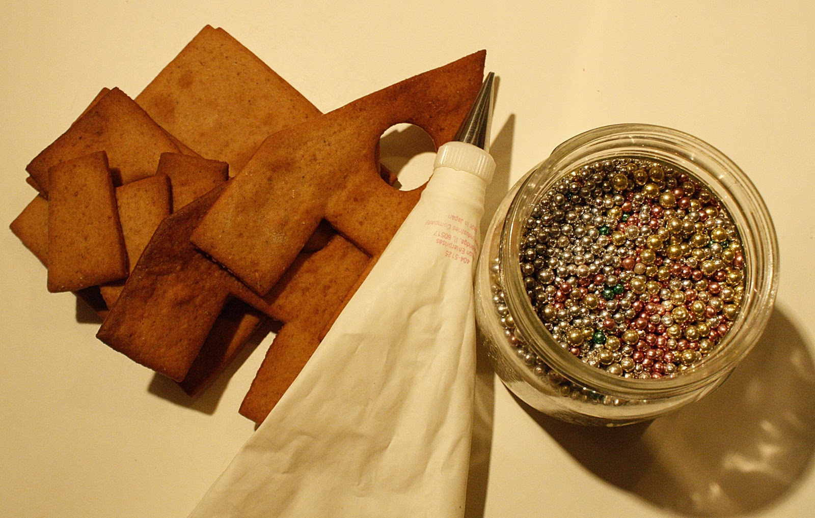 Hus 1: Icing i pose med tynn tipp og sølvkuler.