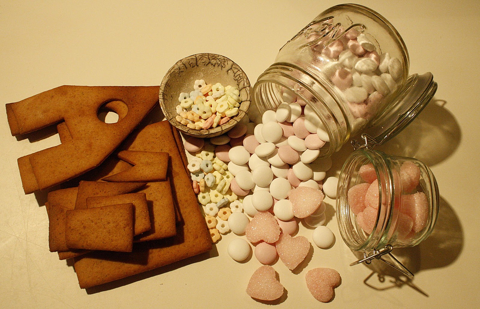hjemmelagede sukker hjerter, Operamints, små drops i pastell.
