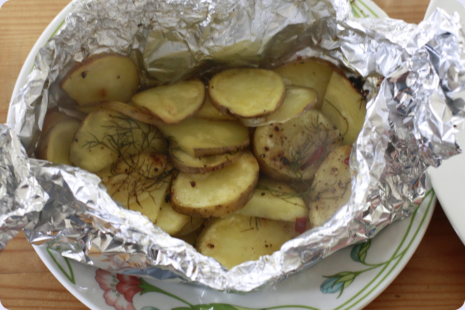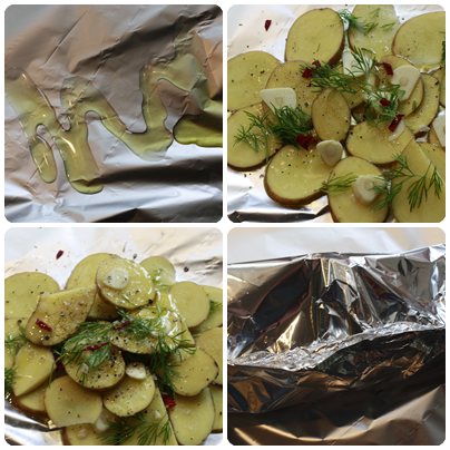 Flott ide og disse potetene vil passe kjempegodt til mine lakseporsjonspakker…