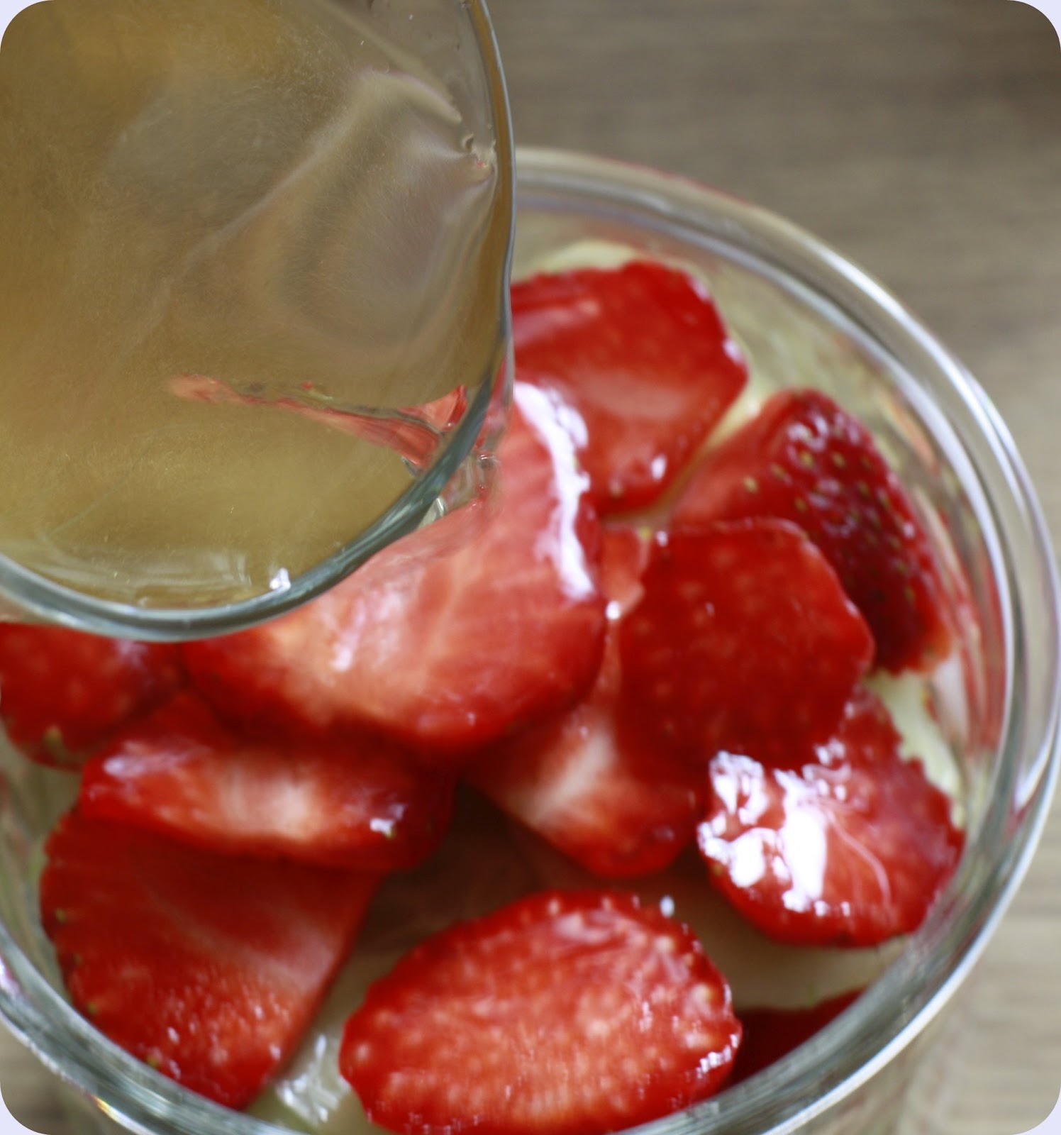 jordbærskiver lag vis i et glass.