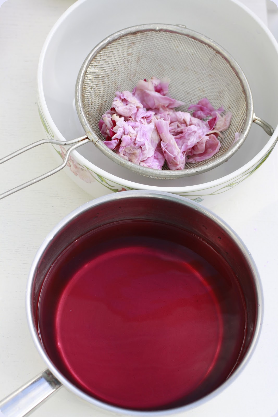 Sil rosenbladene og vannet i en kasserolle.