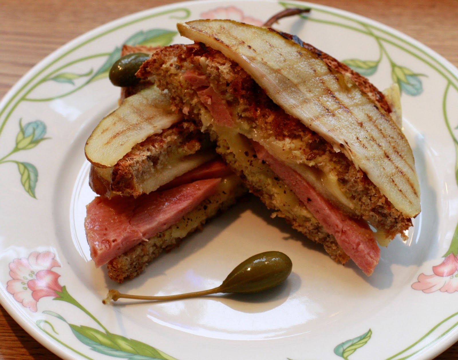 Server med en skive pære og kapers på toppen.