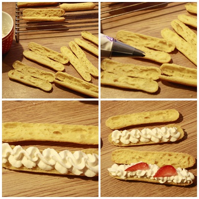 Sprøyt ut rette lengder 10-12 cm lange på et bakepapirkledd