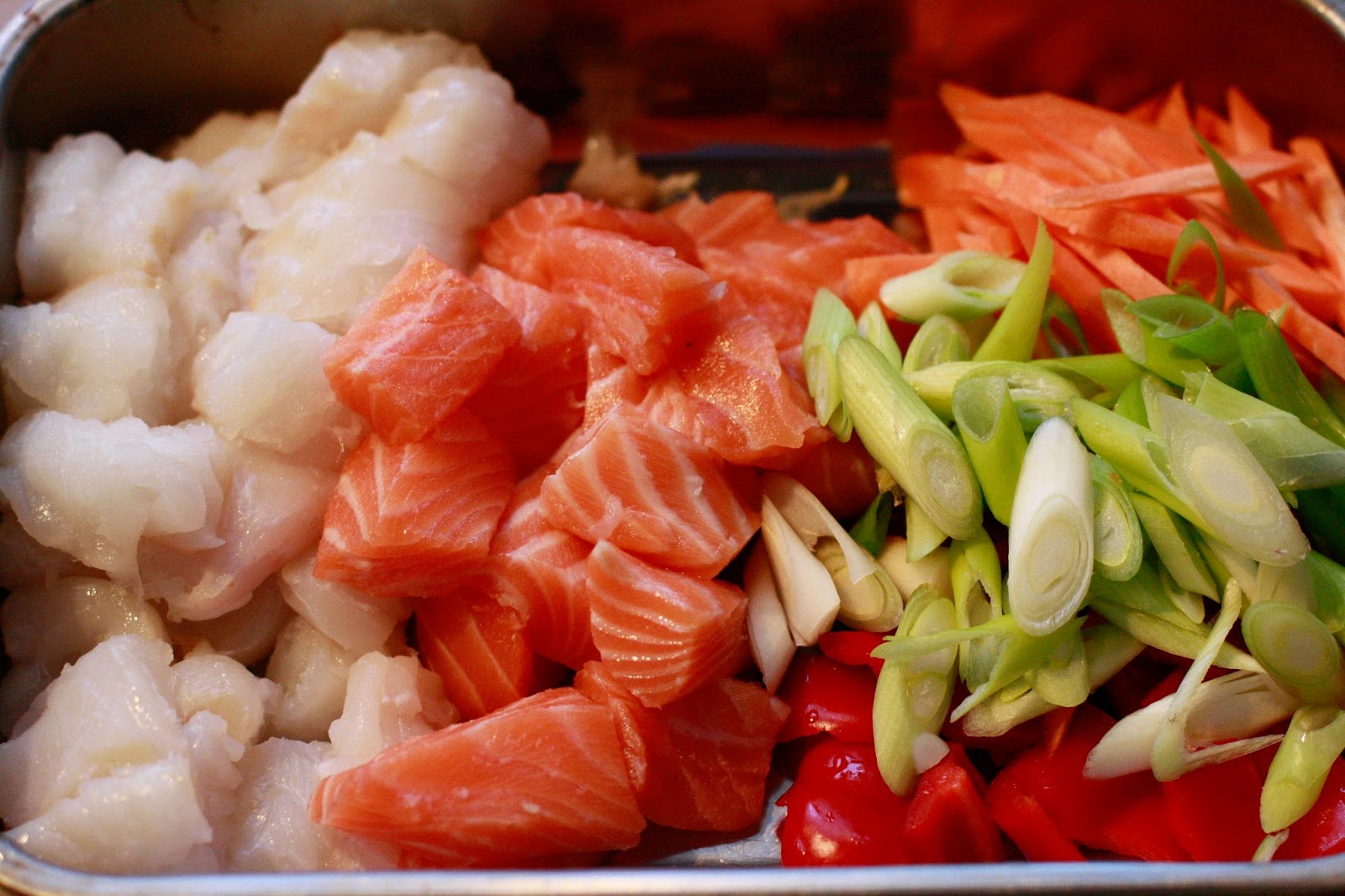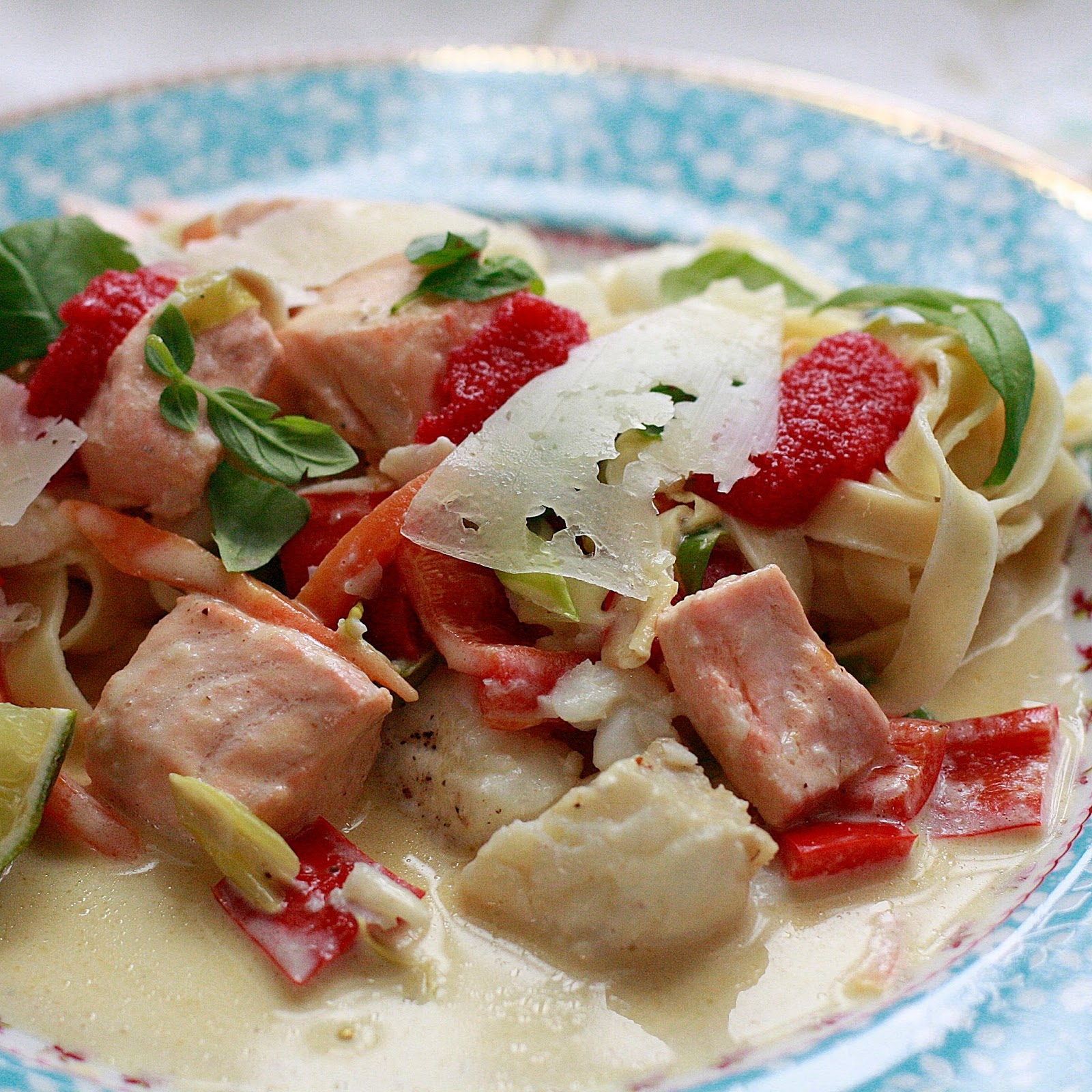 Smak til med lime salt og pepper, vend det forsiktig i gryta,