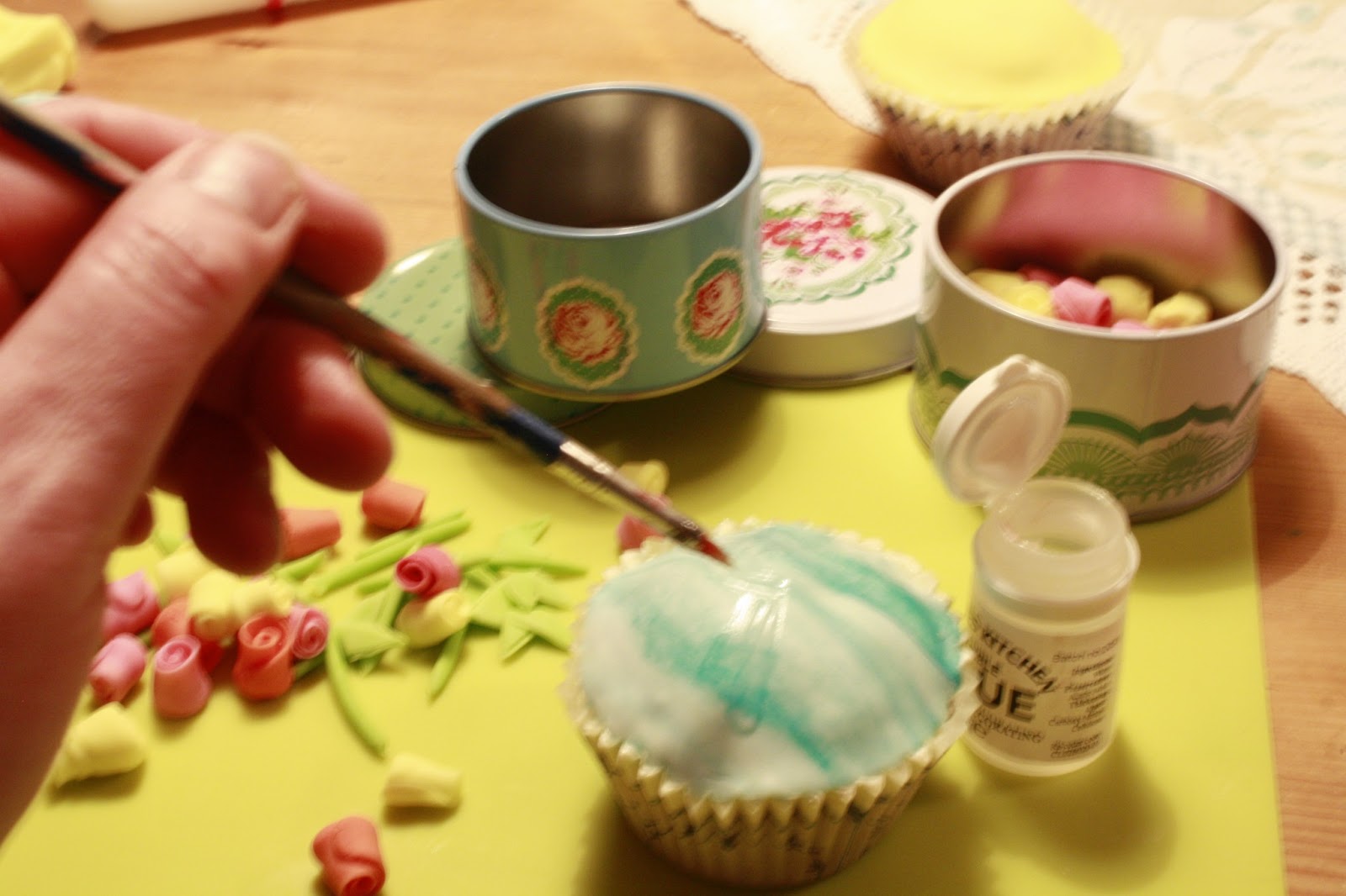 Legg fondanten på muffinsen og trykk den jevnt rundt.