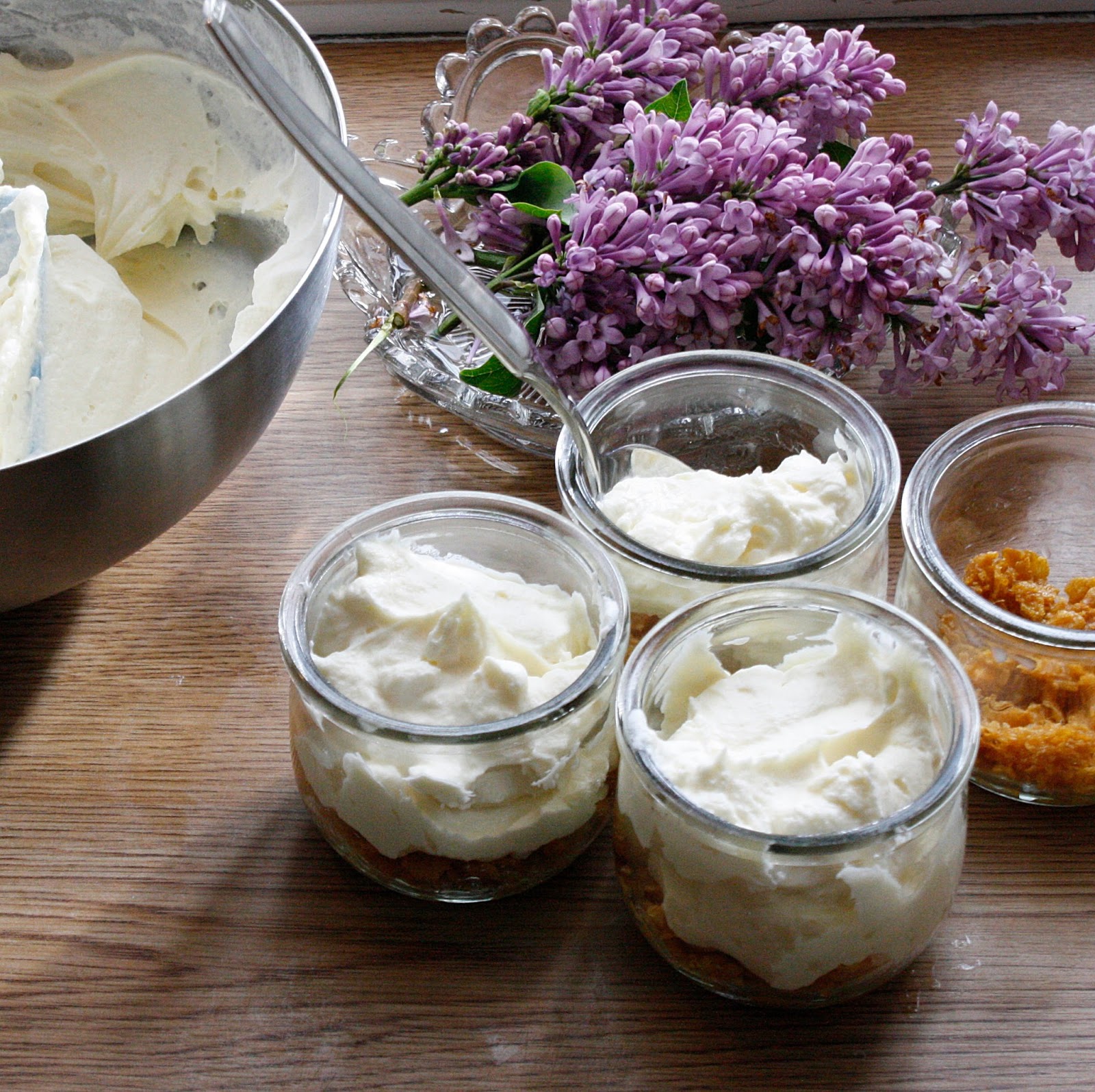 Fordel ostemassen oppå den avkjølte cornflakesbunnen.