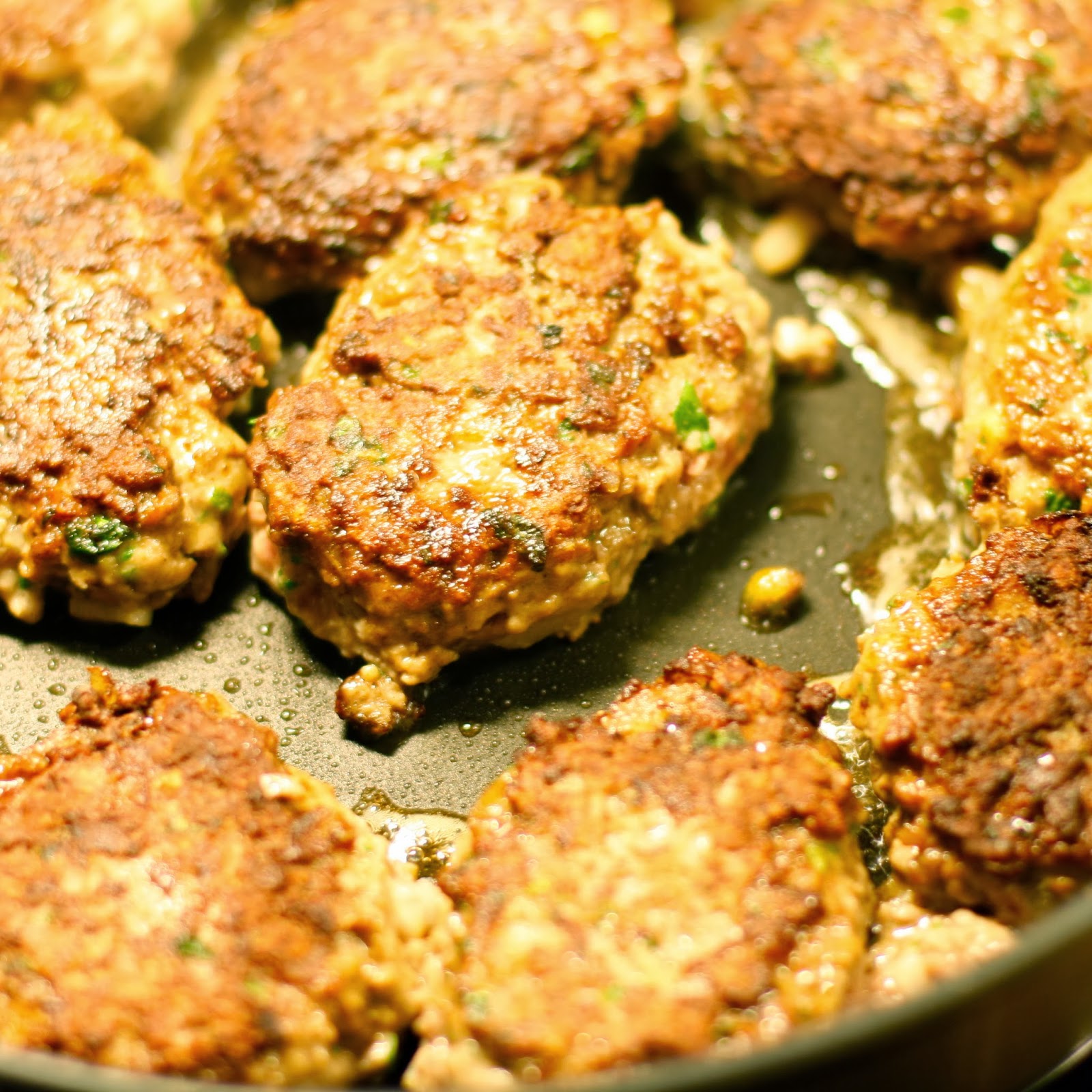 Form kjøttkaker med to skjeer dyppet i kaldt vann.