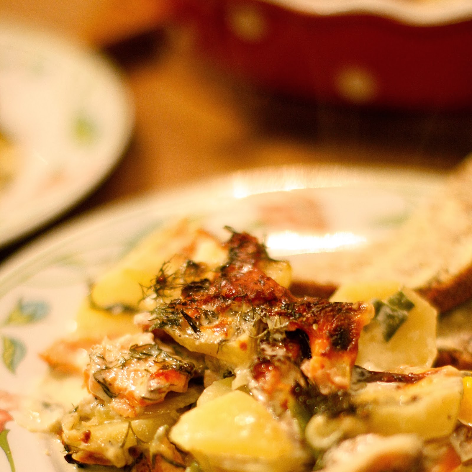 rester av kokte poteter og rester av røkelaks.