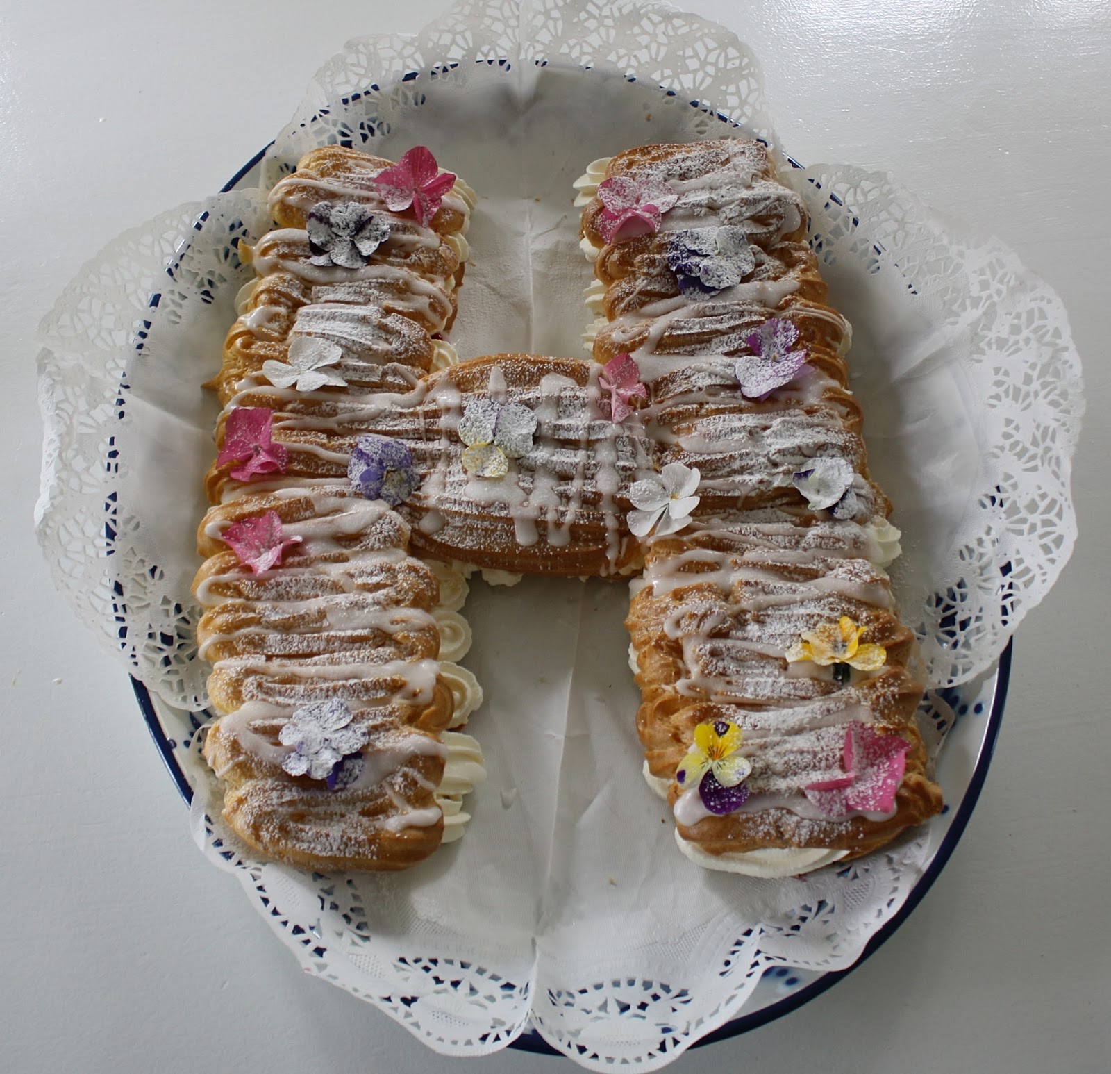 Her er det brukt 2,5 plater butterdeig for å lage en H.